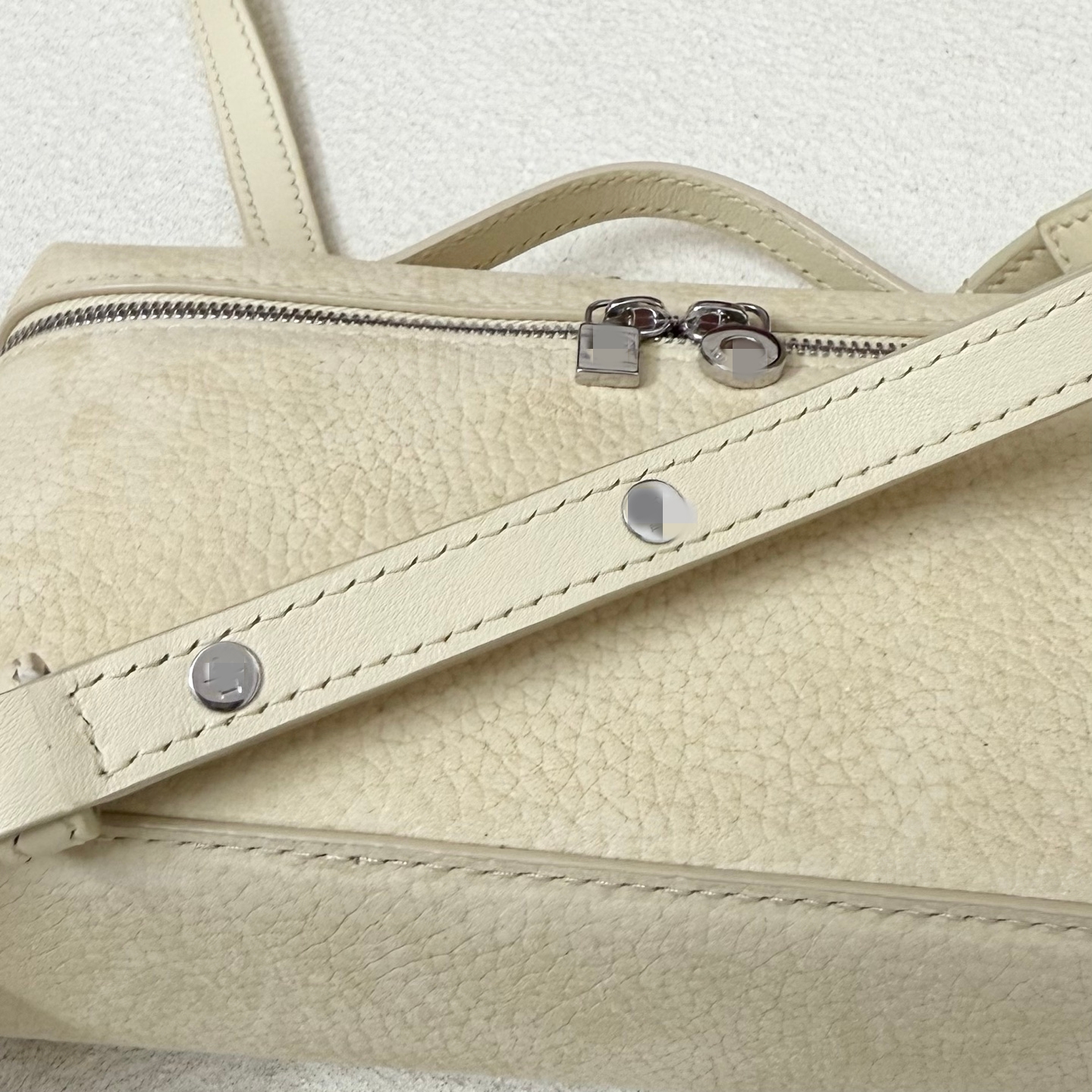 LP19 蛋糕黃磨砂皮 飯盒包 寬開口小袋採用如黃油般柔軟的小牛皮打造。隨附可拆卸肩帶,可打造出百搭迷你包袋。高度:11釐米寬度:19釐米深度:6.5釐米
