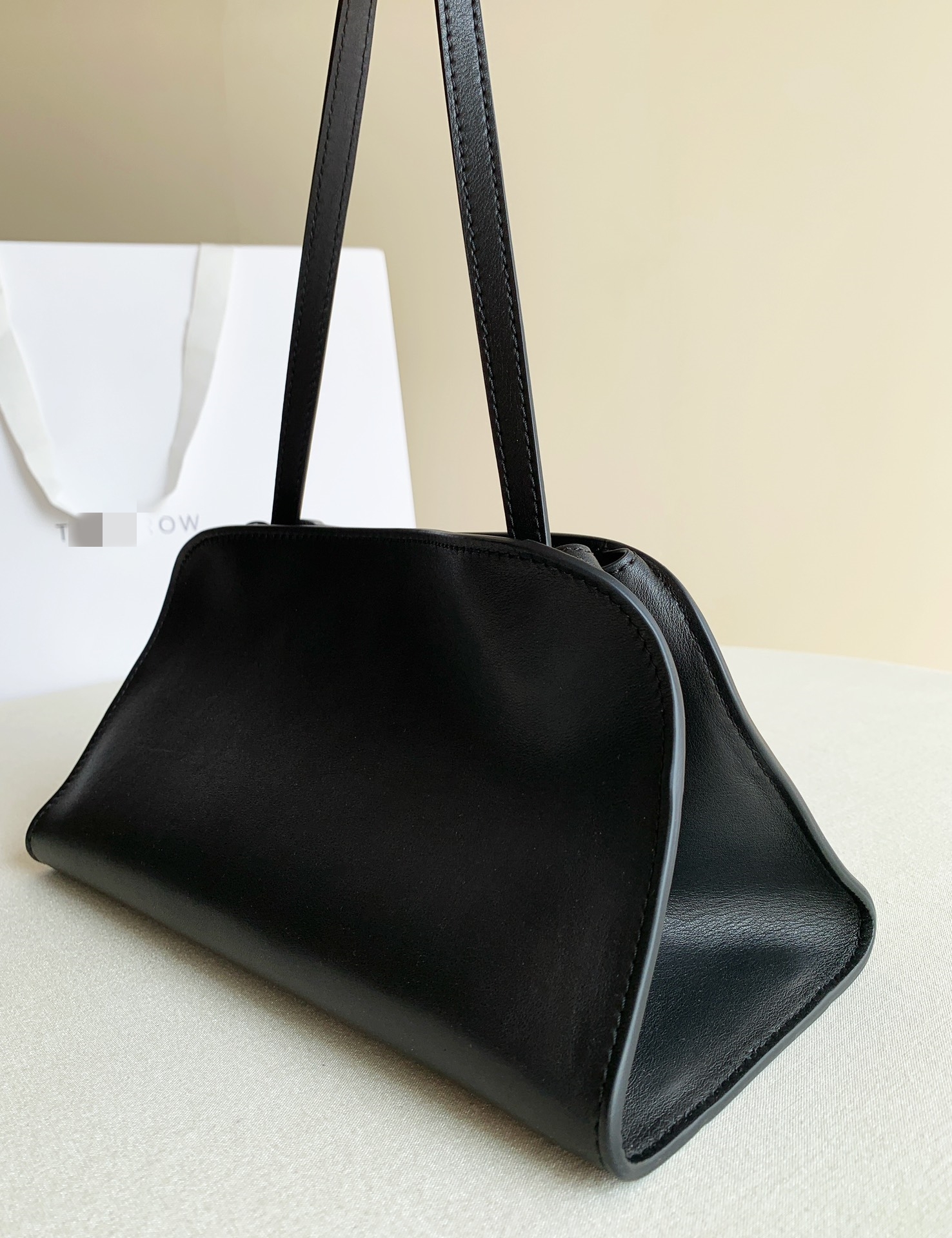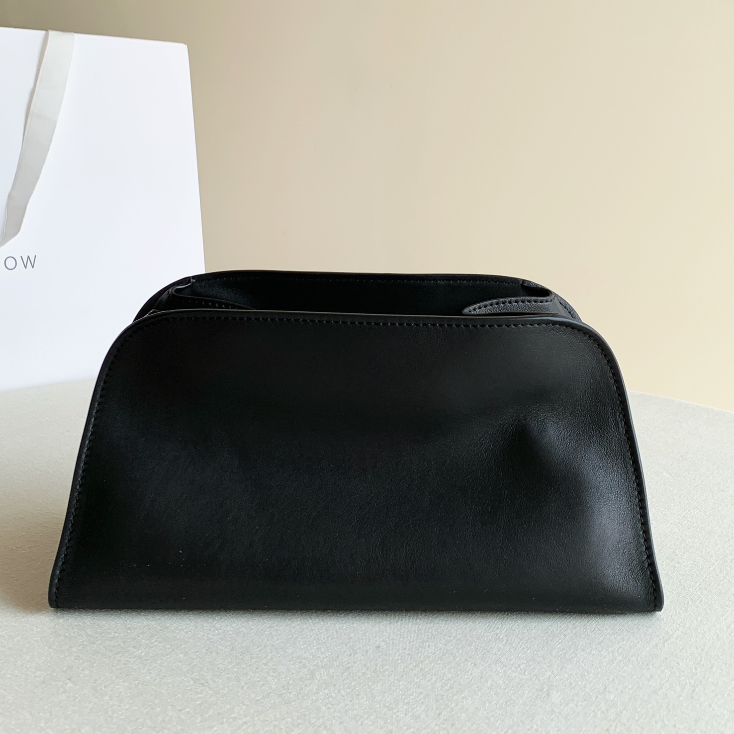 Row 黑色 Peggy Clutch 腋下包馬鞍皮(黑色) 減法美學 拒絕繁冗 延續一貫的極簡主義梯形曲線包身+油感馬鞍皮= 優雅復古高級感越是簡約 對皮質越是考究,質感决定美貌~包型類似Margaux的衍生款,而Peggy更適合春夏可腋下背 亦可拆下肩帶變手拿包,靈活使用 ▪小而不廢 小小的包身 容量卻非常令人滿意