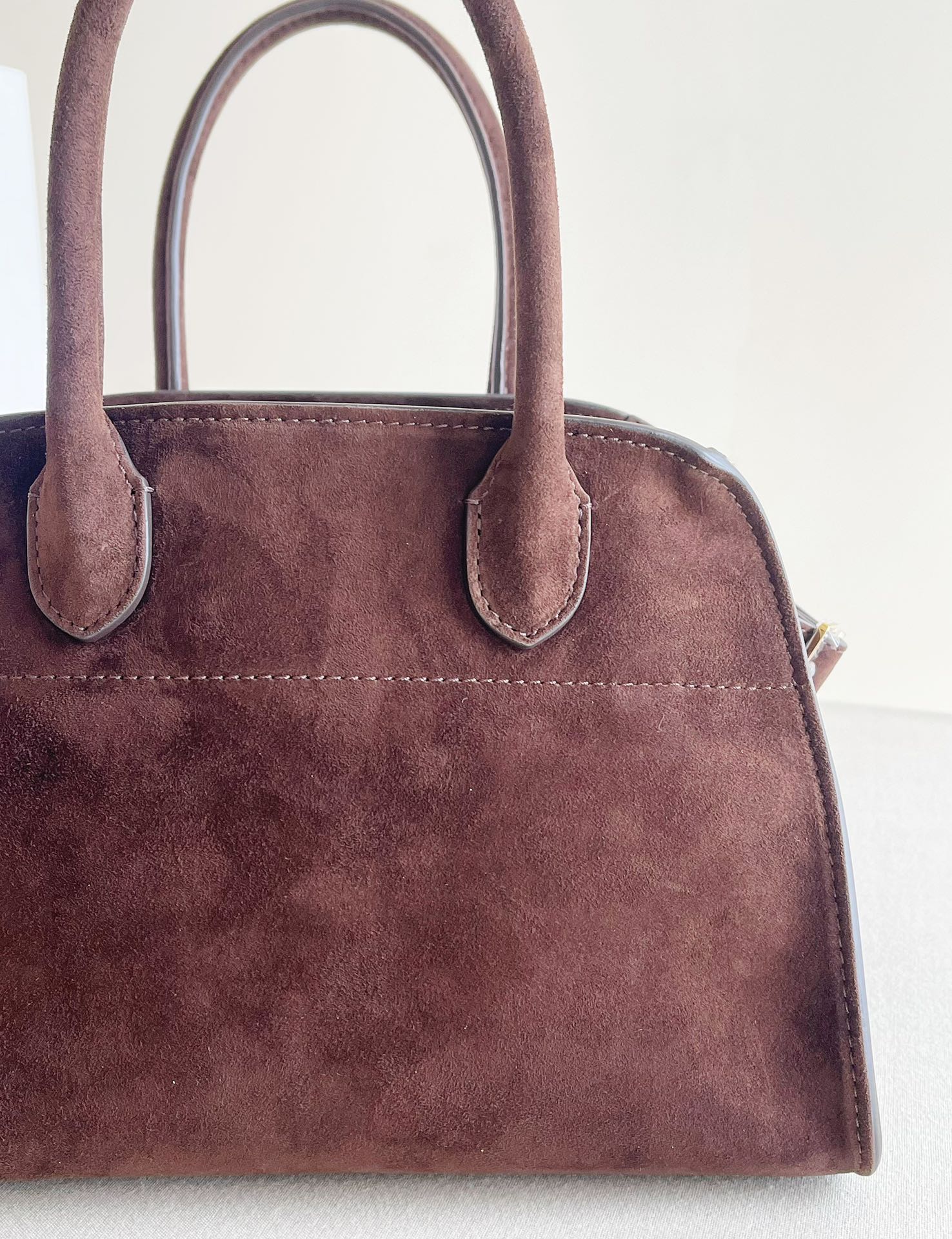 Row Margaux10 小號麂皮棕色 時尚界的寵兒了,將美拉德色系的溫暖與深邃展現得淋漓盡致。這款M10,其精緻的設計令人讚歎不已,麂皮材質帶來的絨毛感覆蓋整個包面,而非僅僅是零星的小區域,搭配上金色全鋼五金件,展現出一種高級而簡約的風格。每一個細節都堪稱藝術品。扣子與麂皮的結合,更是讓人愛不釋手。👭姐妹~秋天🍂