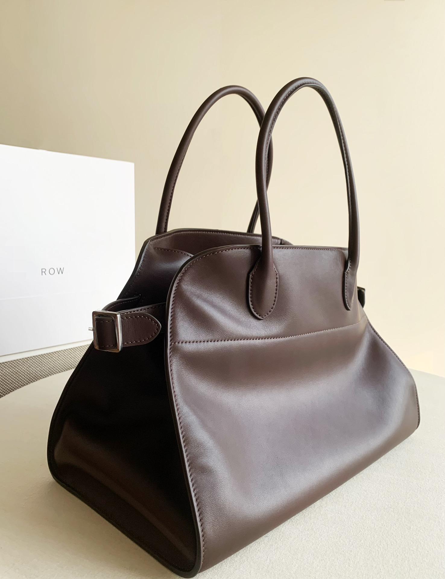 Row Margaux15 大號 馬鞍皮 深巧棕 老錢風質感的馬鞍皮油脂豐富 越用越柔軟 越用越有feel 顏色:棕色極具復古風 巧克力色更加經典老錢風,越大越有慵懶鬆弛感,妥妥老錢風,誰能不愛! M15內部容量真的很大,東西放完還有三分之二 值得一提,裝13寸電腦剛好可以立住,省去空間