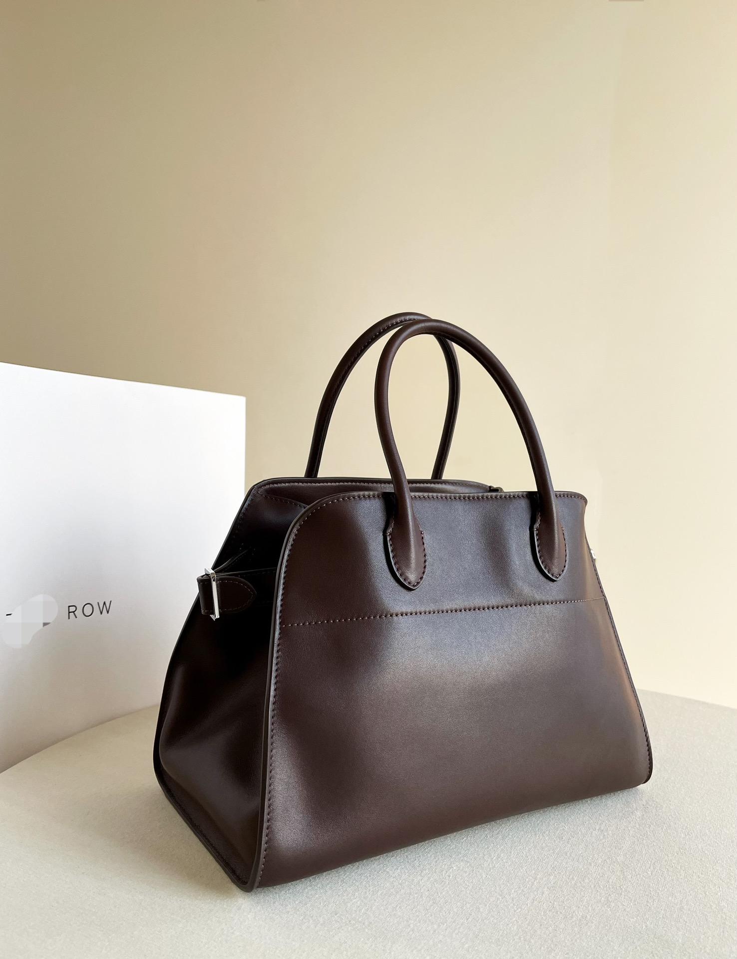 Row Margaux12 中號 馬鞍皮 深巧棕 這款包包在國外簡直不要太火,追求小眾高級的姐妹千萬不要錯過了! 拿到第一眼並沒有很驚豔,越看越有味道~ 不論把它放在那個位置,都散發著孤傲的貴族氣息。 馬鞍皮真的很有魅力,屬於是皮革中的奢侈品,沒有太多加工製作,呈現最原始天然的野性。皮子摸起來手感很舒服,用的越久皮面越油亮。 M12尺寸更適合國內姐妹體質,M10可愛,M15 17都過於大了。M12容量和大小,都很完美。