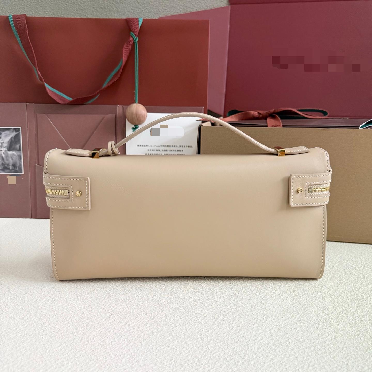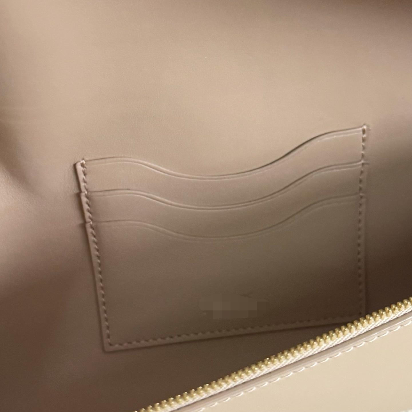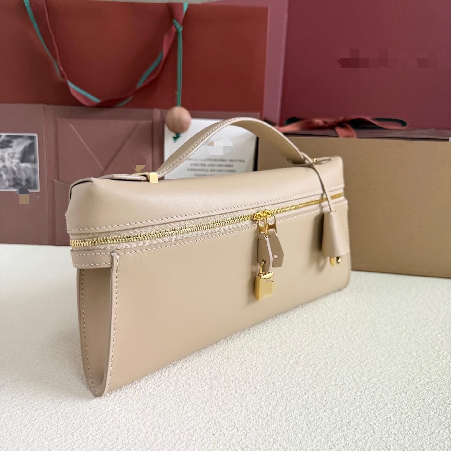LP29 淺乳香色 Extra Clutch 手拿包 Extra Clutch L29手拿包 款號:FAQ2609 顏色:淺乳香色 這是一款比例緊湊的優雅配飾,採用進口原廠小牛皮材質,觸感光滑飽滿,並有標誌性的頂部縫線。雙拉鍊閉合處懸掛著Loro Piana的標誌性掛件,搭配精緻的皮革鑰匙扣。3個內部插槽,納帕皮革內襯。 尺寸:29×14×3cm 配全套定制禮盒包裝