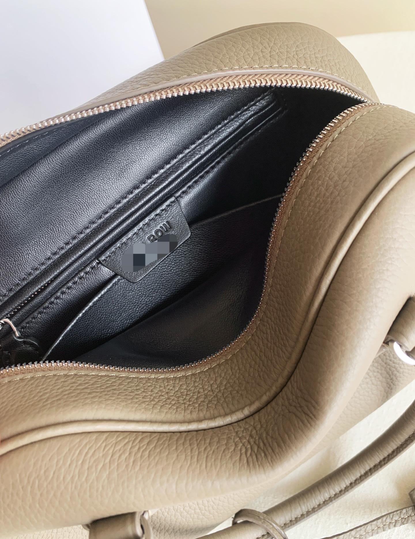 Row India10 烟灰色 India 10 smoke taupe烟灰色,保齡球整個包非常極簡大方,沒有過多複雜的裝潢,很耐看且不容易過時,而且很百搭。日常通勤或者出街都不會違和,本身就自帶一種低調的高級感。 包身採用頭層牛皮材質,內裡用的是細膩的羊皮,觸感非常親膚、順滑的感覺。特別是你的一些小物件,或者比較嬌貴的東西,羊皮內裏也能提供很好的呵護。