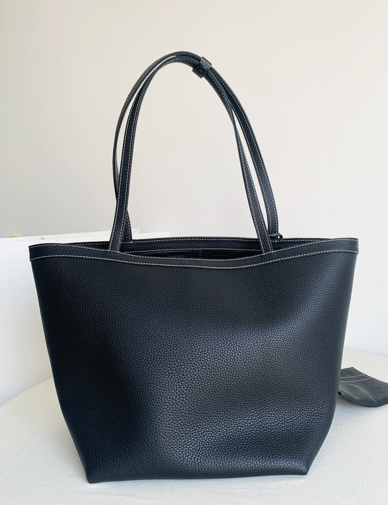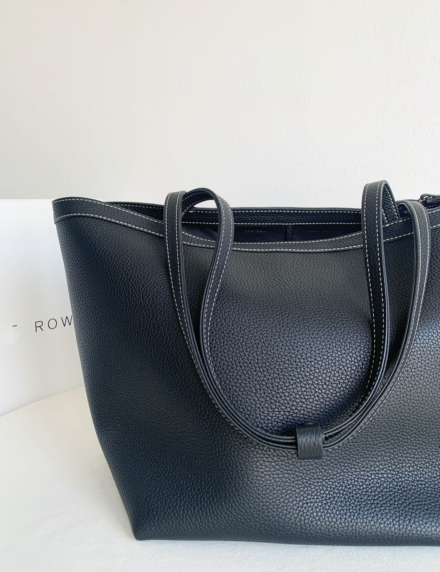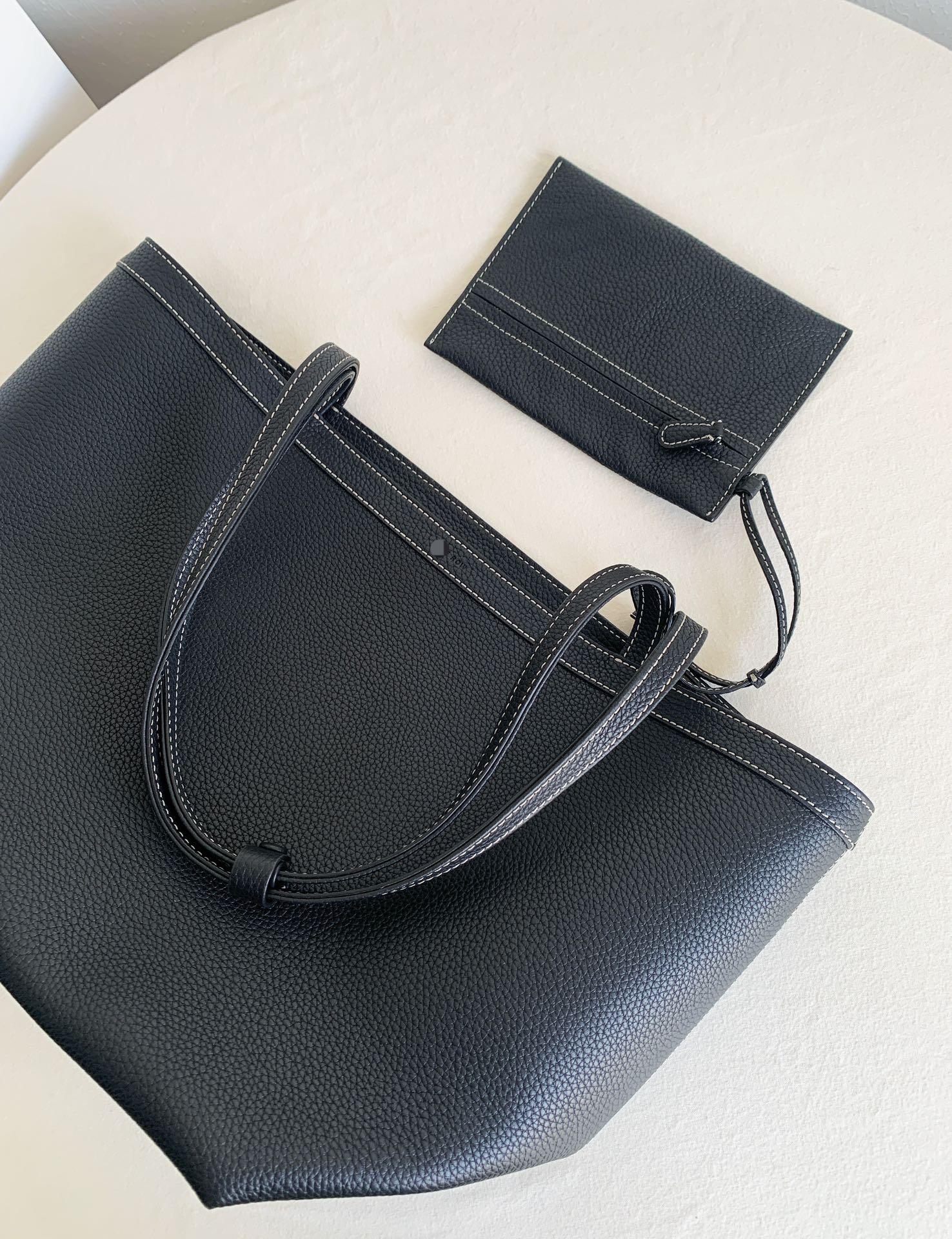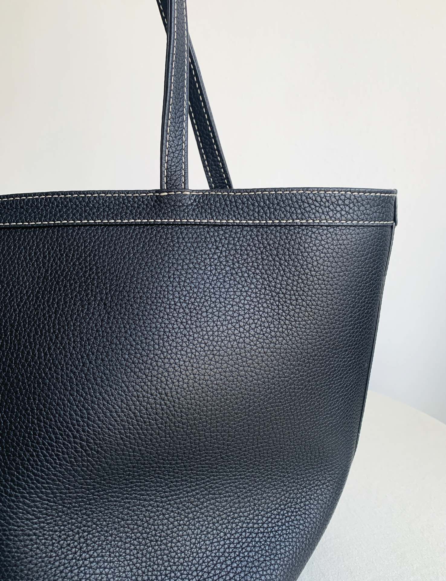 Row Tote Stitch 大號 棕色 外皮採用頭層荔枝紋TC牛皮製作,內裡搭配羊皮。 擁有比較飽滿的顆粒紋理, 包體舒適度拉滿;有一定的垂墜感, 且皮料富有高含量的油脂, 用的時間越長皮質會越柔軟。 搭配一個可拆卸小卡包,繞2圈可以當包掛, 平時也可以放在包內,可兩用搭配。 底面還做了四個真皮墊底,完全不需要擔心摩擦問題,整體包包以明線勾勒出輪廓,簡約大氣!