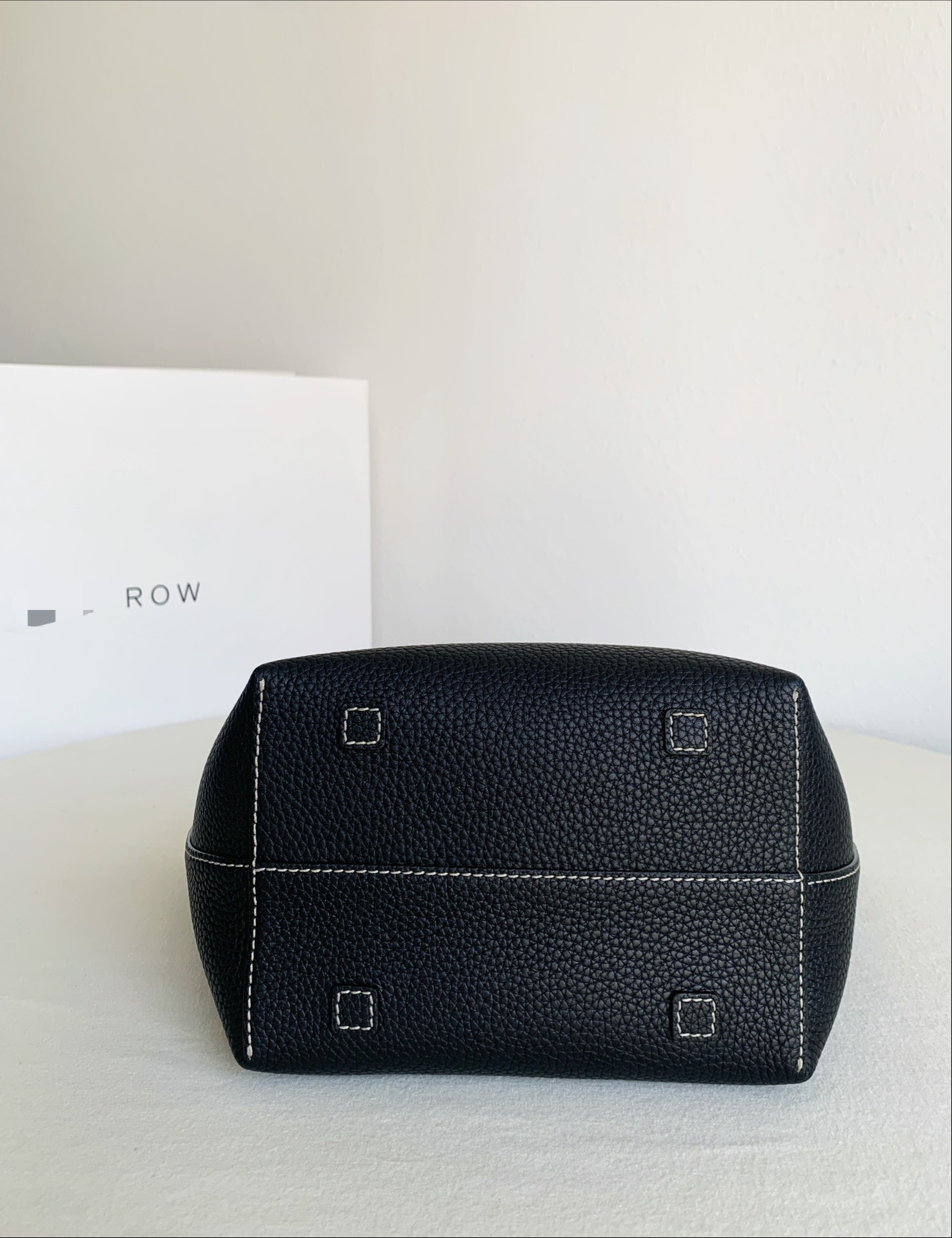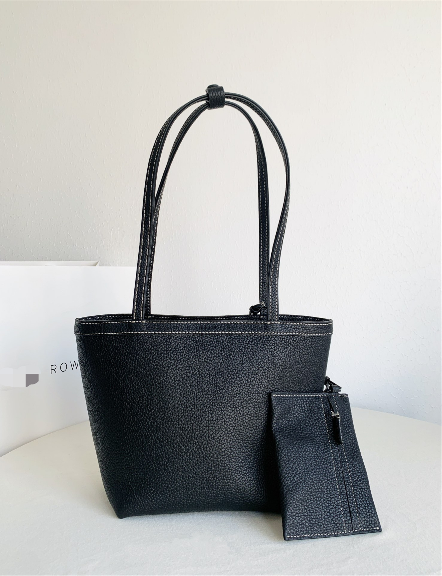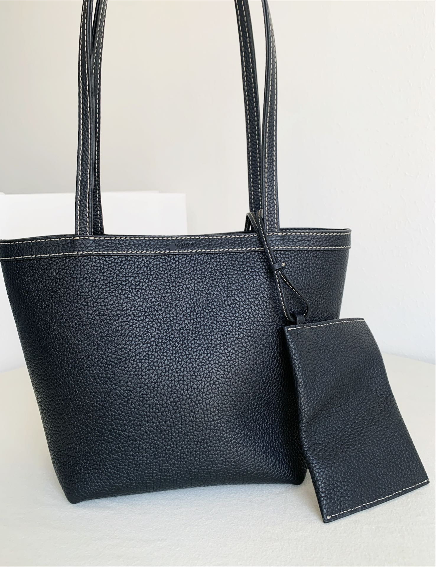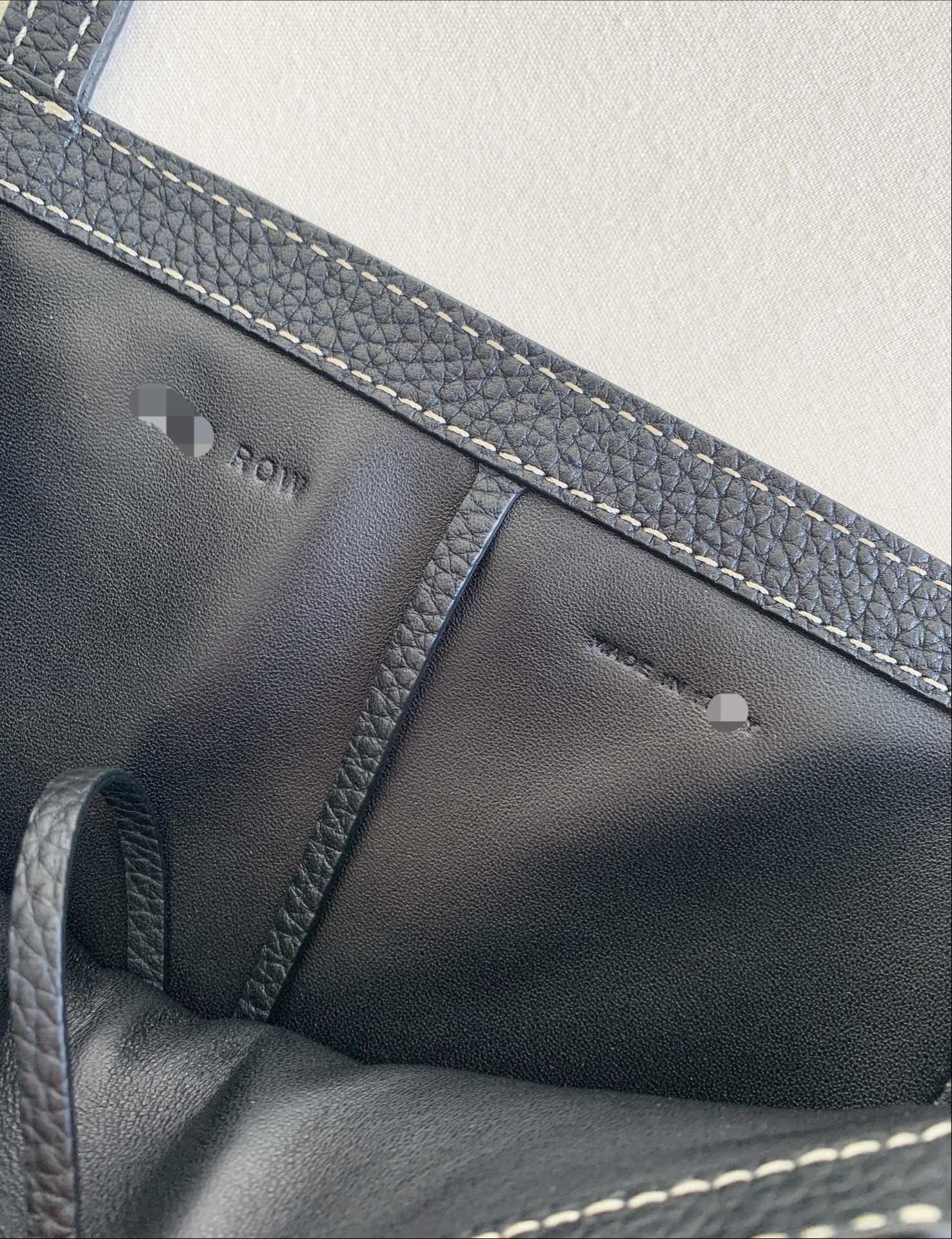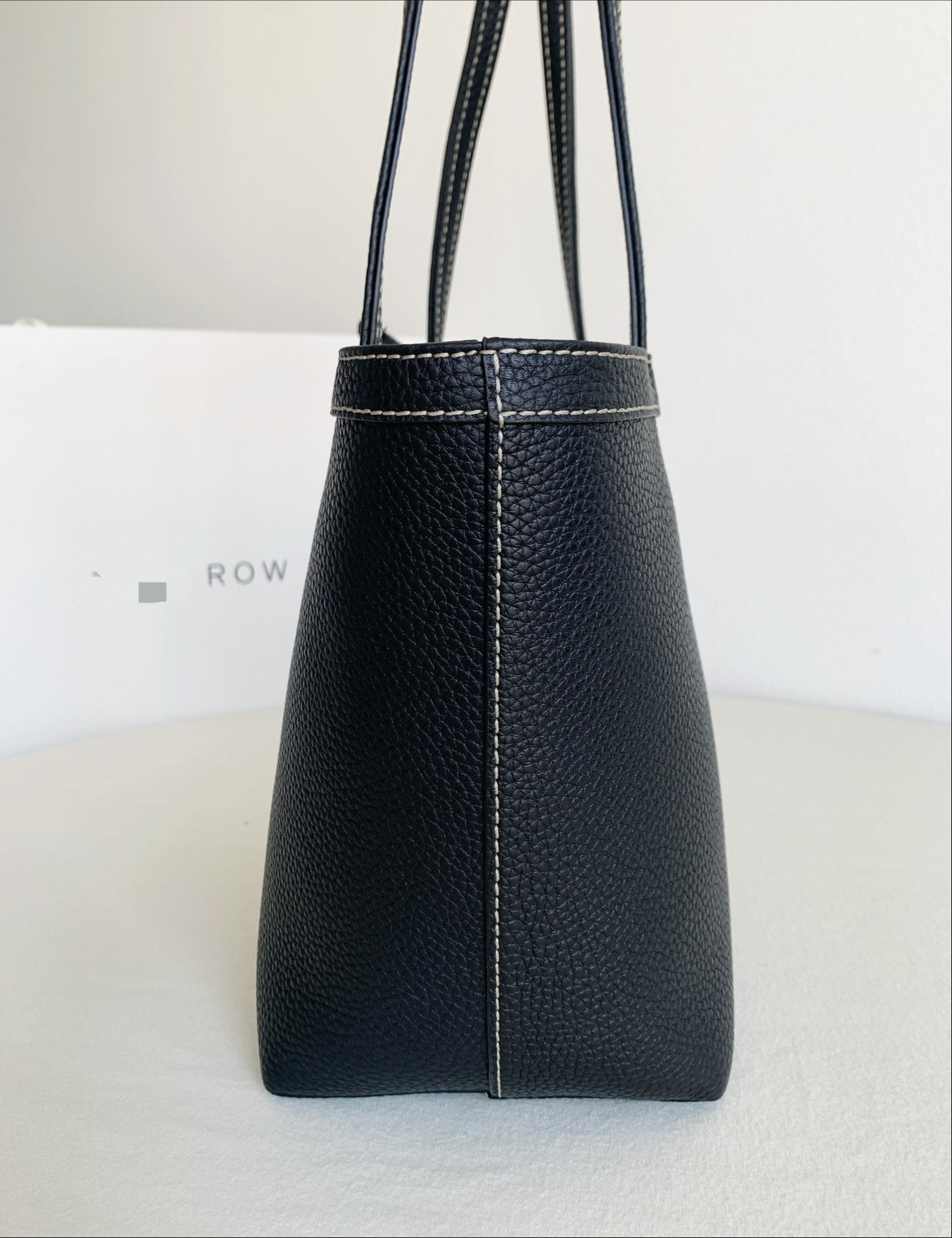 Row Tote Stitch 小號 黑色 外皮採用頭層荔枝紋TC牛皮製作,內裡搭配羊皮。 擁有比較飽滿的顆粒紋理, 包體舒適度拉滿;有一定的垂墜感, 且皮料富有高含量的油脂, 用的時間越長皮質會越柔軟。 搭配一個可拆卸小卡包,繞2圈可以當包掛, 平時也可以放在包內,可兩用搭配。 底面還做了四個真皮墊底,完全不需要擔心摩擦問題,整體包包以明線勾勒出輪廓,簡約大氣 尺寸:19*13*22