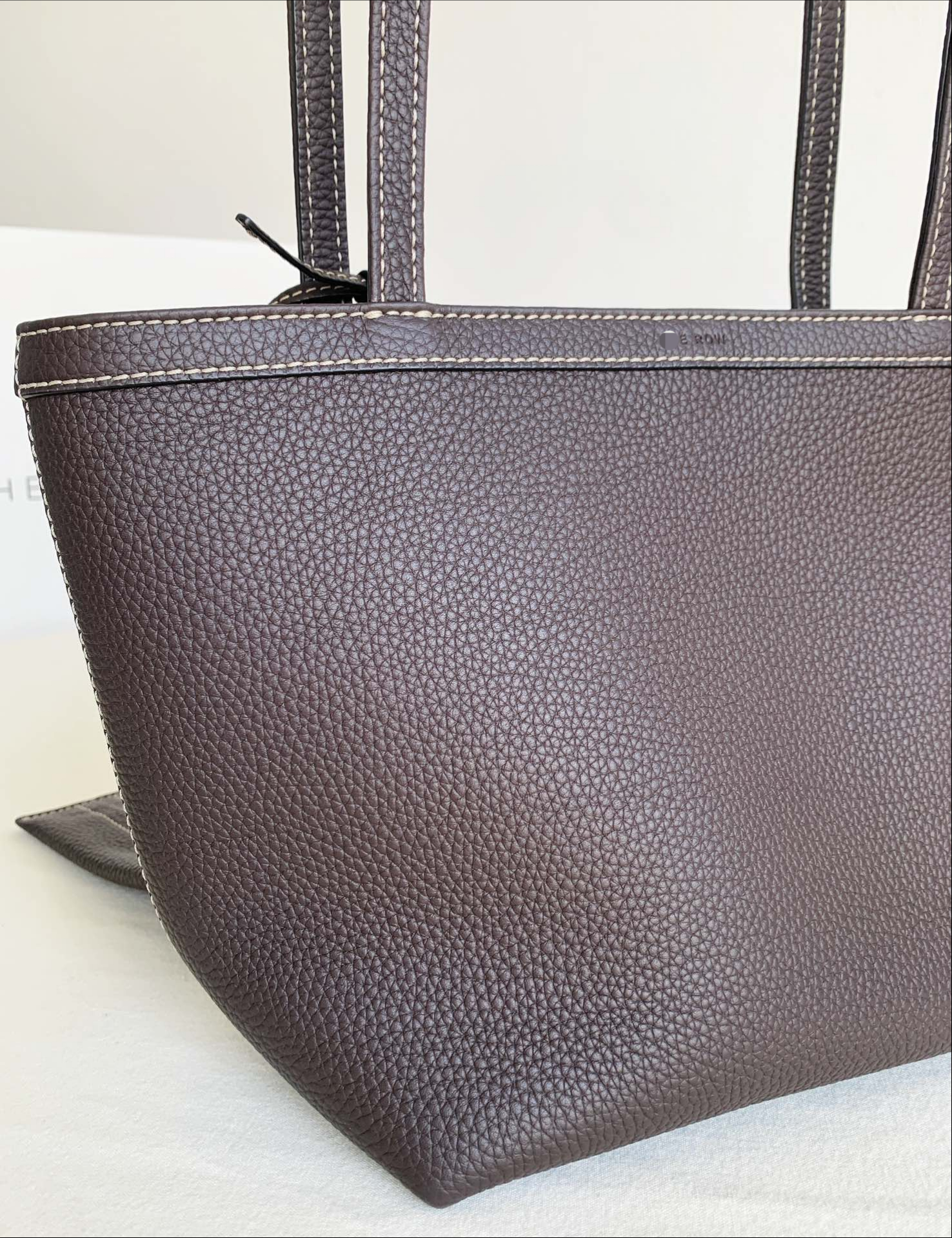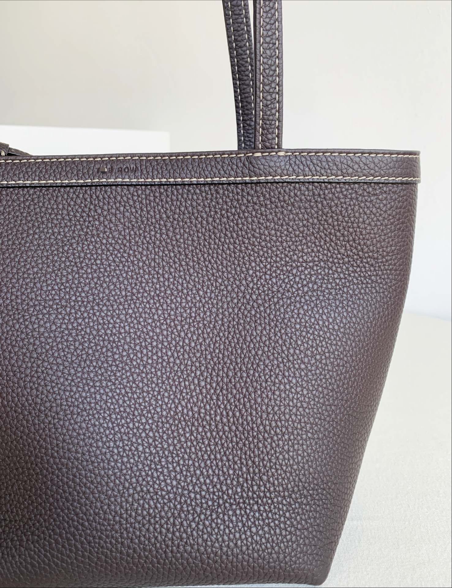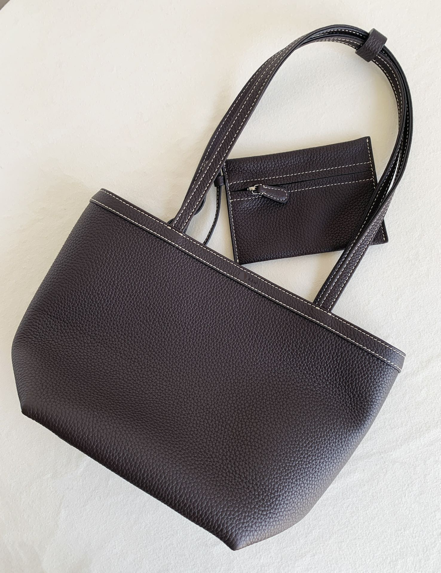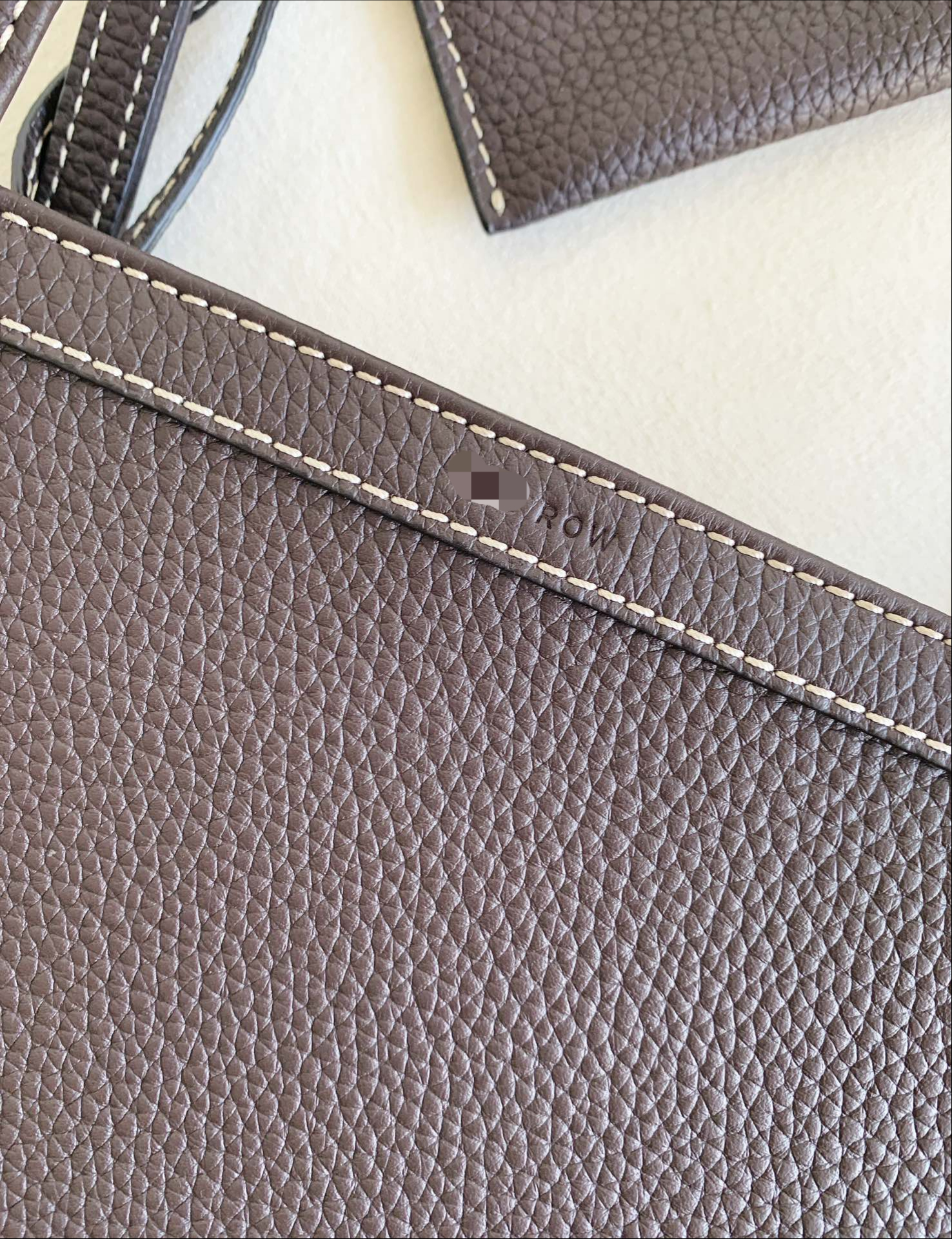 Row Tote Stitch 小號 棕色 外皮採用頭層荔枝紋TC牛皮製作,內裡搭配羊皮。 擁有比較飽滿的顆粒紋理, 包體舒適度拉滿;有一定的垂墜感, 且皮料富有高含量的油脂, 用的時間越長皮質會越柔軟。 搭配一個可拆卸小卡包,繞2圈可以當包掛, 平時也可以放在包內,可兩用搭配。 底面還做了四個真皮墊底,完全不需要擔心摩擦問題,整體包包以明線勾勒出輪廓,簡約大氣 尺寸:19*13*22