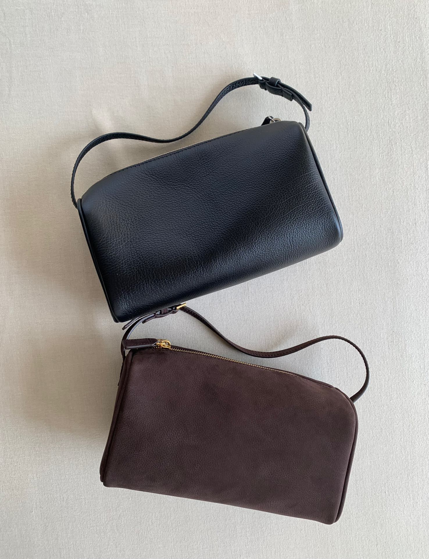 90s筆筒 烏木棕(胎牛磨砂) 90S 我認為是小包界的扛把子,百搭實用,小而不廢,且自帶高級感。 Logo同樣是側邊壓印,皮質柔軟,磨砂絨面特有的復古貴氣感,喜歡氛圍感可以入;同樣很輕便,容量線上,像小摺傘,手機pro max,化妝品等等都可以放下!