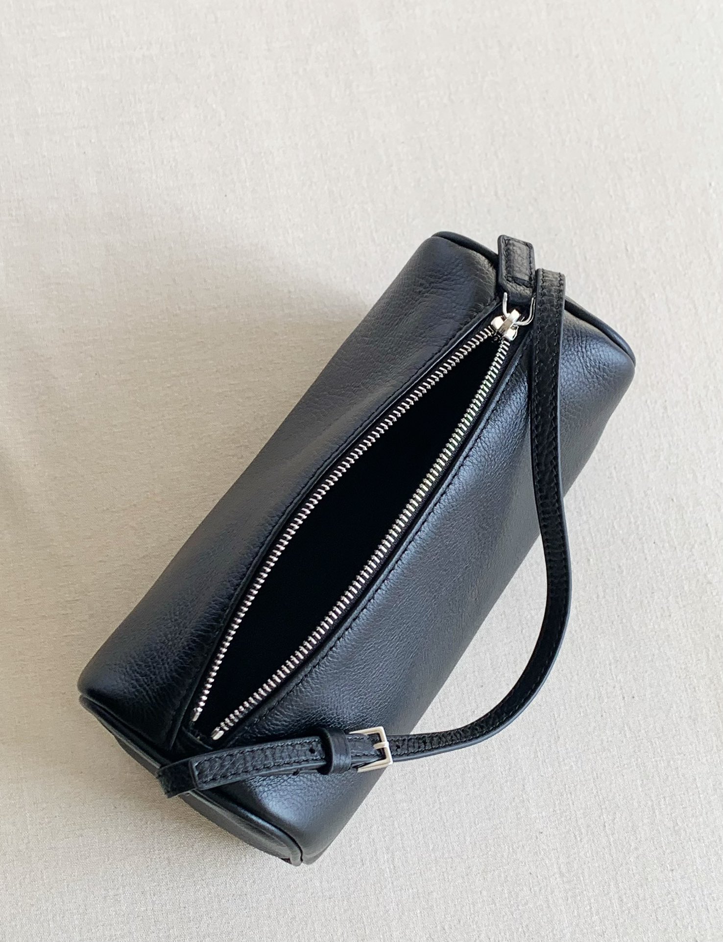90s筆筒黑色(進口胎牛皮) 近期蕞愛的一隻手拎小包兒,90s 外層胎牛皮,黑色胎牛的紋理更立體清晰,帶有淡淡的牛頸紋,內裡搭配黑色綿羊皮,手感細膩柔軟,容量上很能裝,手機、化妝品,鑰匙,錢包都不在話下!