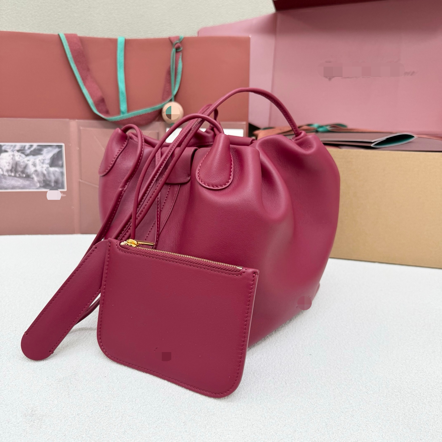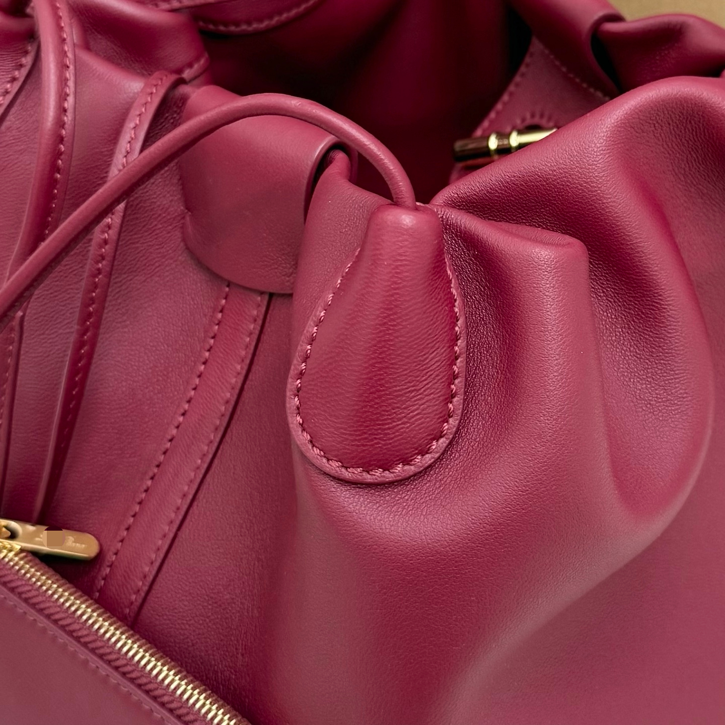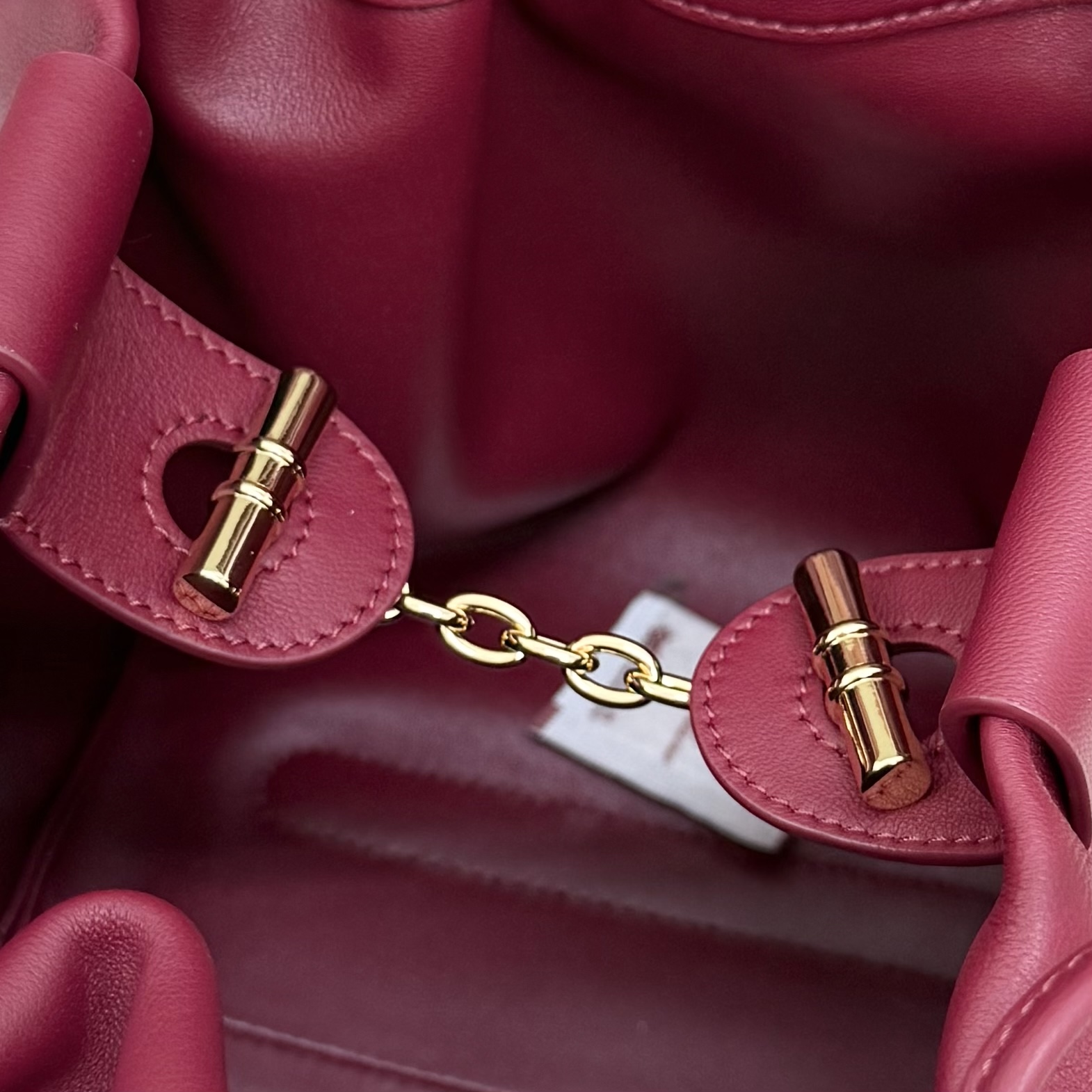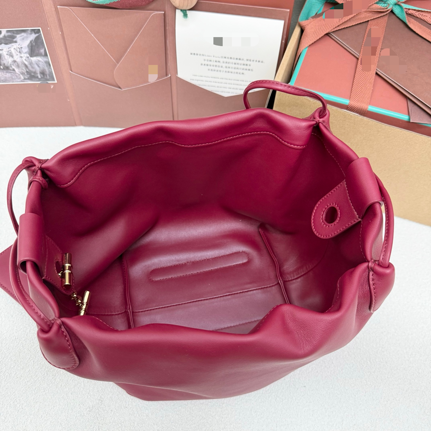 LP Bail Softie抽繩水桶包 款號:FAP12826 顏色:紅色羊皮Bail Softie是一款精緻的小號水桶包,配有手工縫製手柄,採用無縫設計,配有抽繩肩帶,可手提或斜挎。採用柔軟絲滑的羊皮革精心打造,表面呈現獨特的粒面質感。內部金屬扣環,內部皮革小袋,帶扣環,金屬色飾面配件,正面壓印同色系徽標,皮革底座。羊皮內裏 size:21 * 16.5 * 18CM