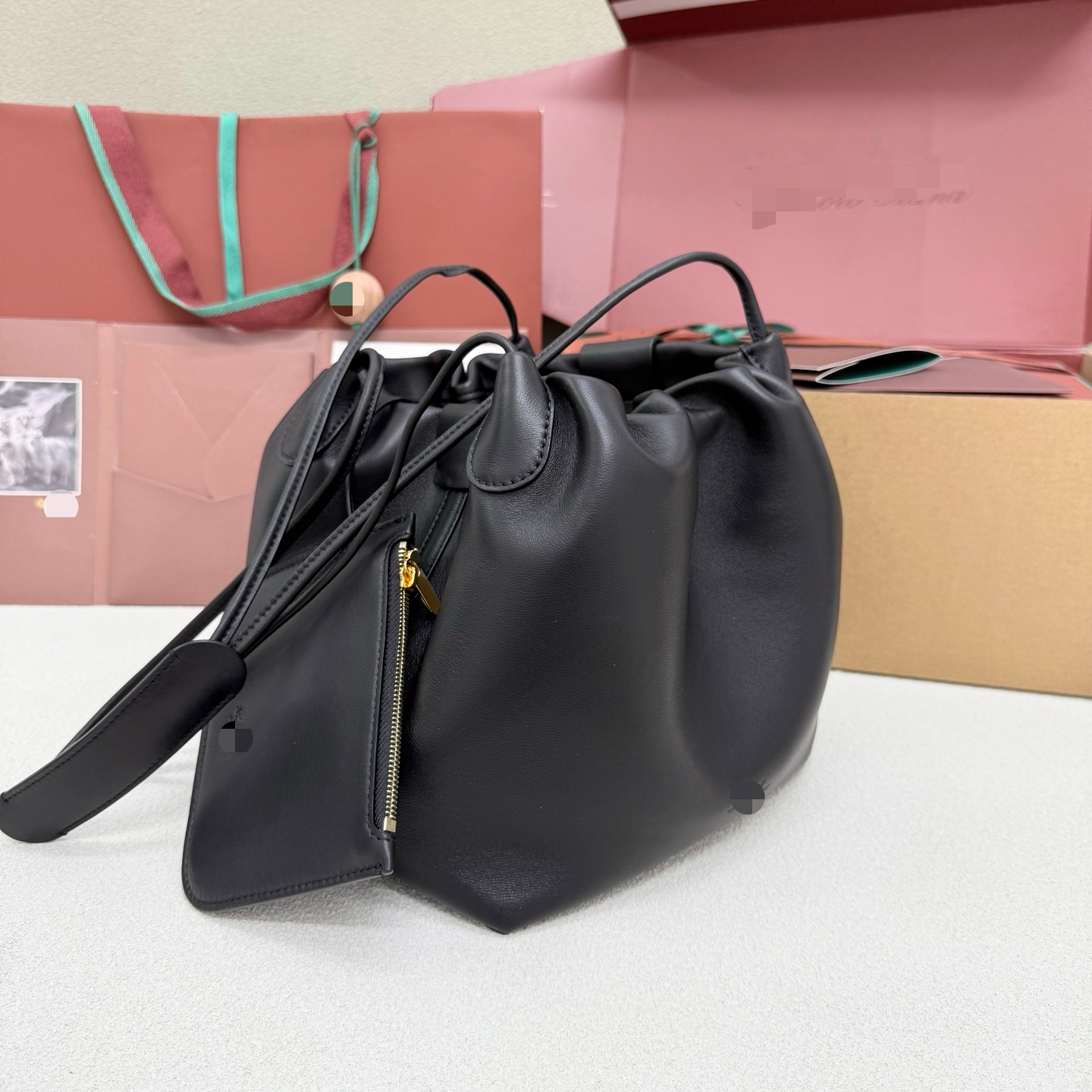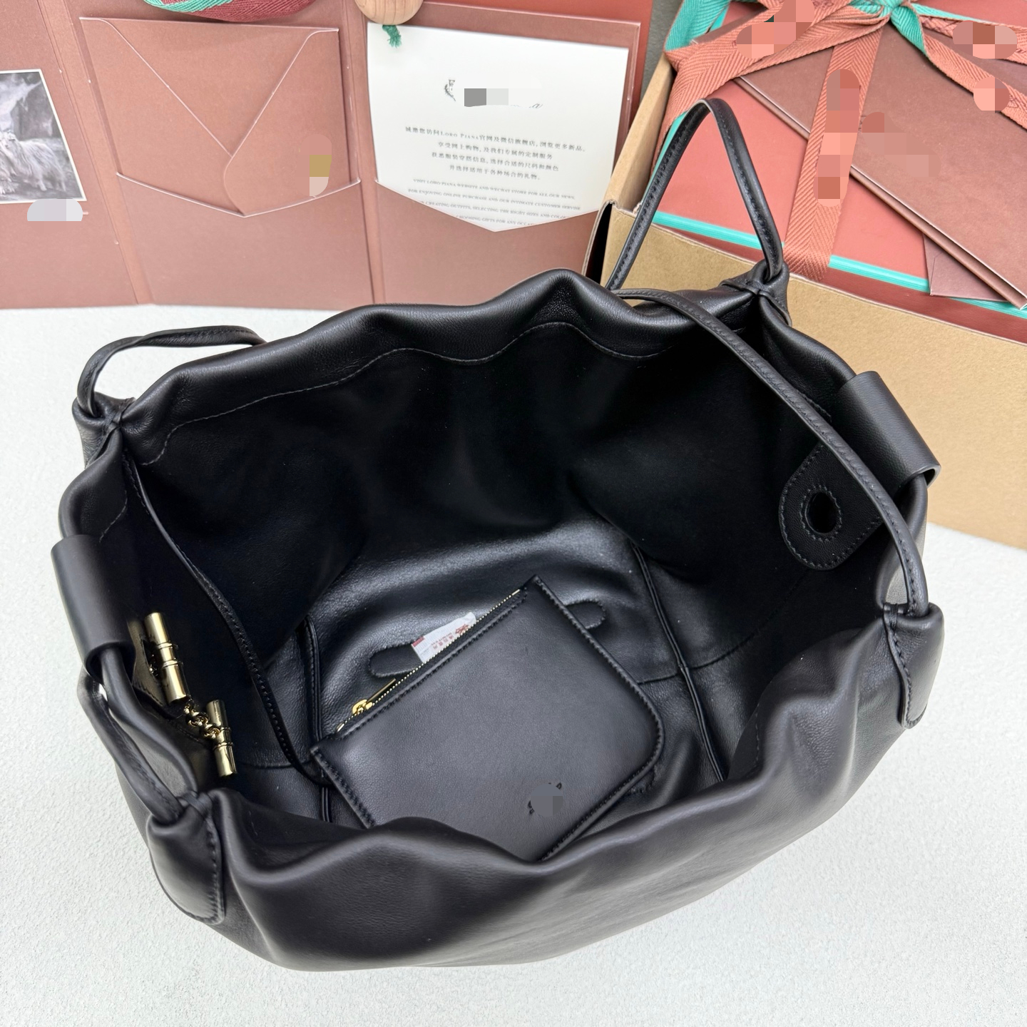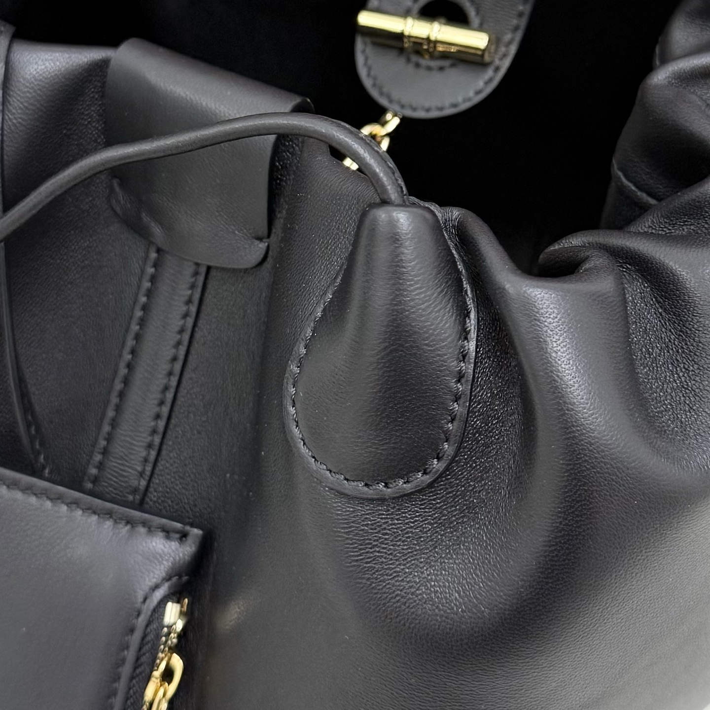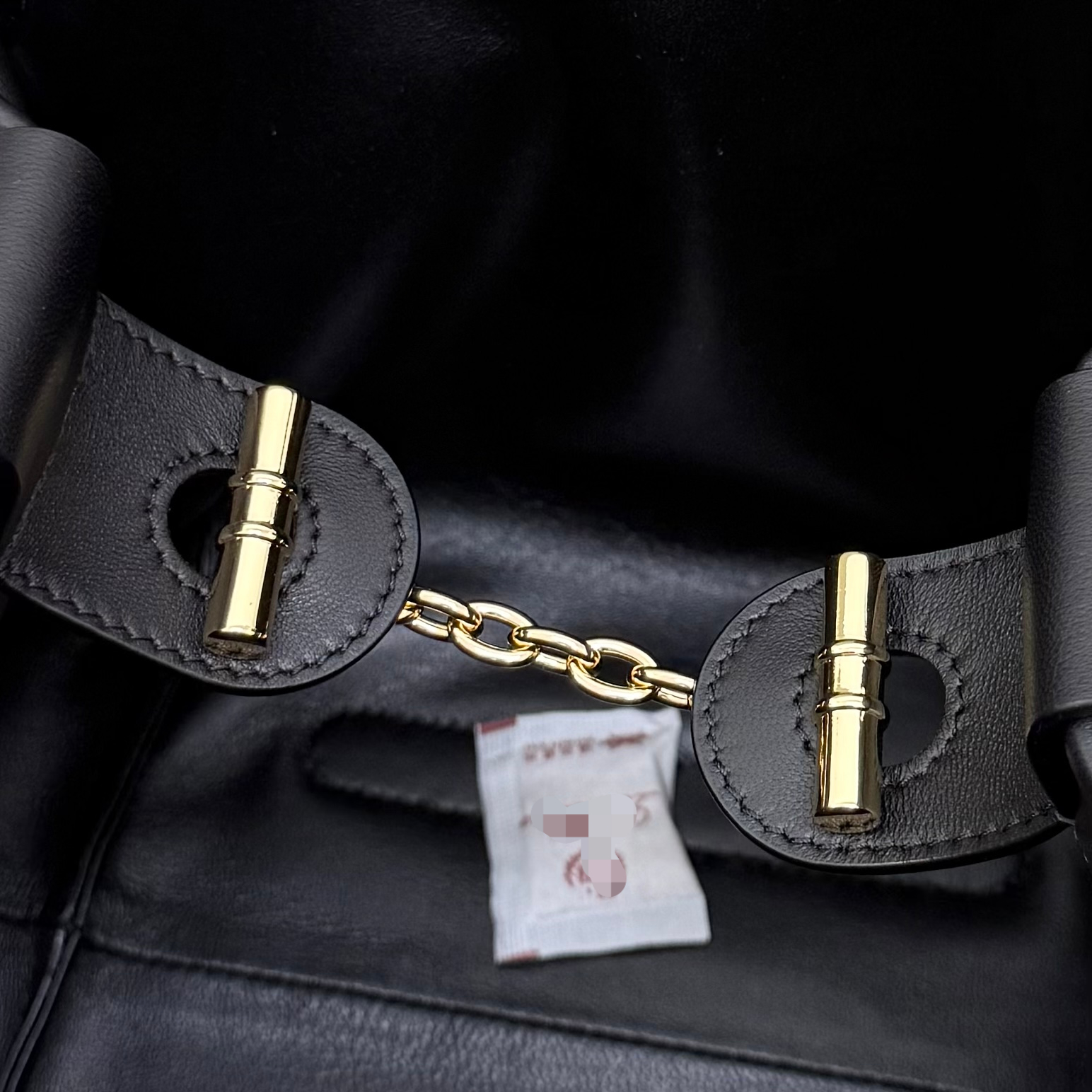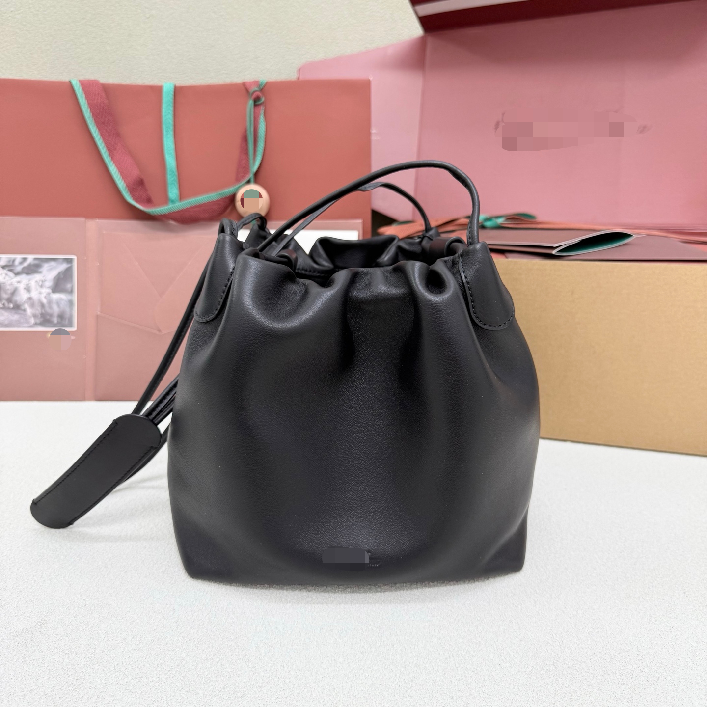 LP Bail Softie抽繩水桶包 款號:FAP12826 顏色:黑色羊皮Bail Softie是一款精緻的小號水桶包,配有手工縫製手柄,採用無縫設計,配有抽繩肩帶,可手提或斜挎。採用柔軟絲滑的羊皮革精心打造,表面呈現獨特的粒面質感。內部金屬扣環,內部皮革小袋,帶扣環,金屬色飾面配件,正面壓印同色系徽標,皮革底座。羊皮內裏 size:21 * 16.5 * 18CM